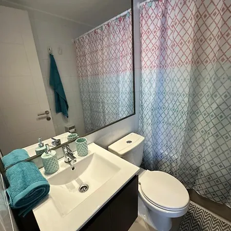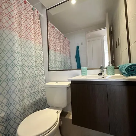 Departamento 3D2B Condominio Altos De Huayquique is equipped with a television, perfect for guests to enjoy their free time. Featuring a separate toilet and a shower, a bathroom is also fitted with a hair dryer and bath sheets.